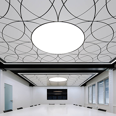Креативный металлический потолок FLUID ® противопоставляет строгим линиям стандартных потолочных панелей плавные и гармоничные. Это придает помещению неповторимый характер. Благодаря изогнутым краям и разнообразию геометрических форм, этот дизайнерский потолок создает совершенно инновационные варианты дизайна.