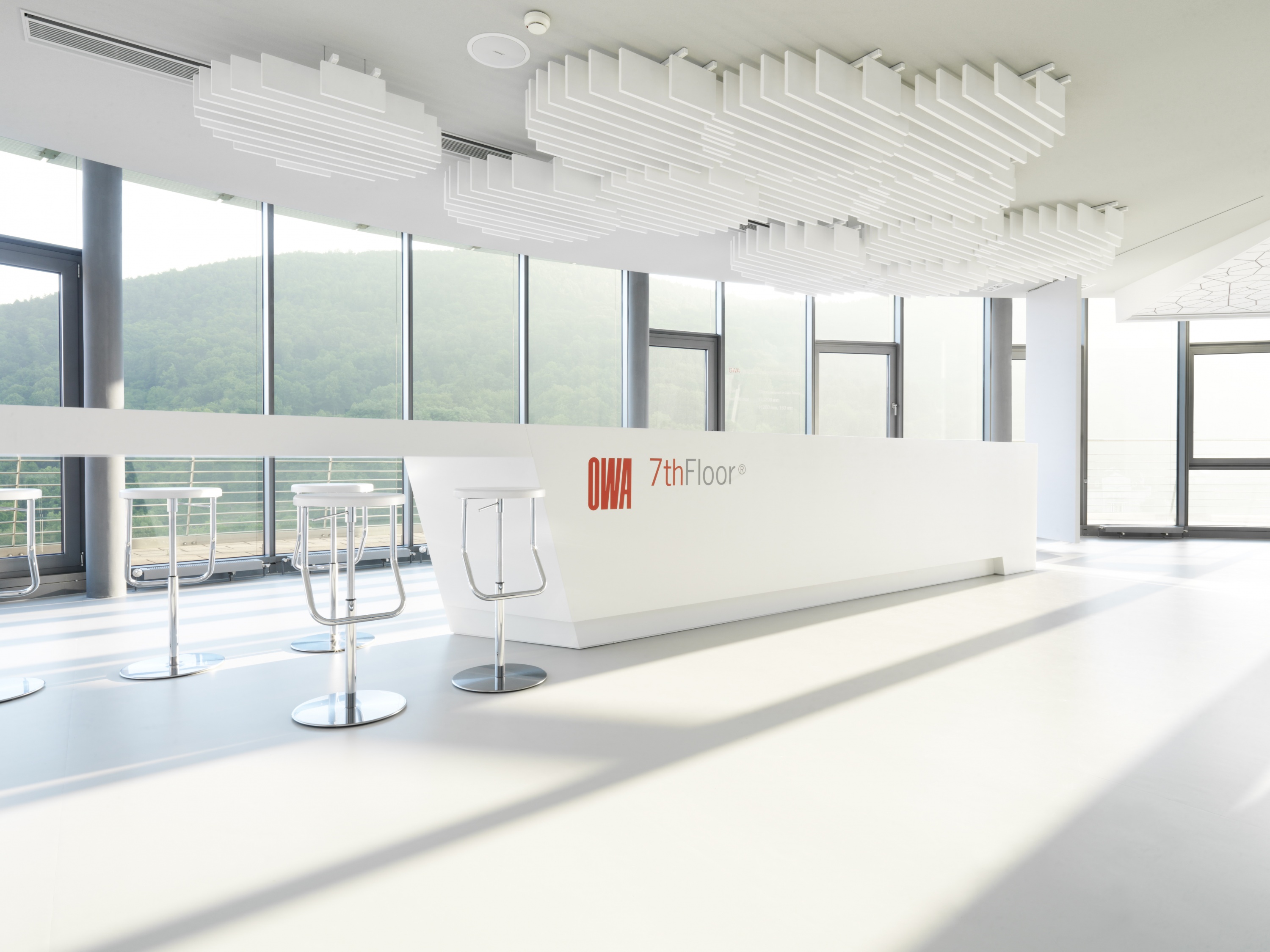 В дополнение к разнообразию OWAconsult гармонично пришлась система OWAplan - функциональный и визуально привлекательный бесшовный подвесной потолок.Впрочем, монтаж не вызывает сложностей и может быть проведен быстро и точно, причем со всеми нишами в конструкции потолка: для светильников, инспекционных лючков, гардин, спринклеров, излучателей и т.д. При большом числе встраиваемых элементов должны использоваться потолочные панели размером 800x1200 мм.