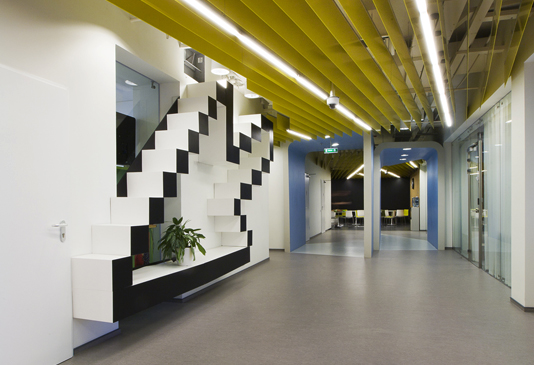 Новый офис почти в два раза больше своего предшественника - он занимает весь 5-ый этаж здания и вытянулся на 200 метров. "Живое" пространство, трансформируемое волей архитекторов в трехмерное с пиксельными арт-объектами выросшими до гигантских размеров. Клиенты хотели видеть «экстраординарный офис, непохожий ни на один другой». Архитекторы проекта решили использовать коридорно-кабинетную систему, расположив вдоль коридора переговорные-«ячейки», рабочие зоны и разные необычные, но функциональные объекты.