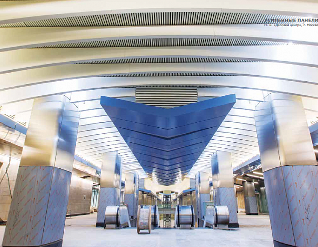 Облицовочные панели для колонн находят широкое применение на объектах транспортной инфраструктуры и при строительстве спортивных сооружений. Помимо усиленной подсистемы облицовочные панели можно декорировать (перфорация, лазерная резка, сублимация, UF-печать).