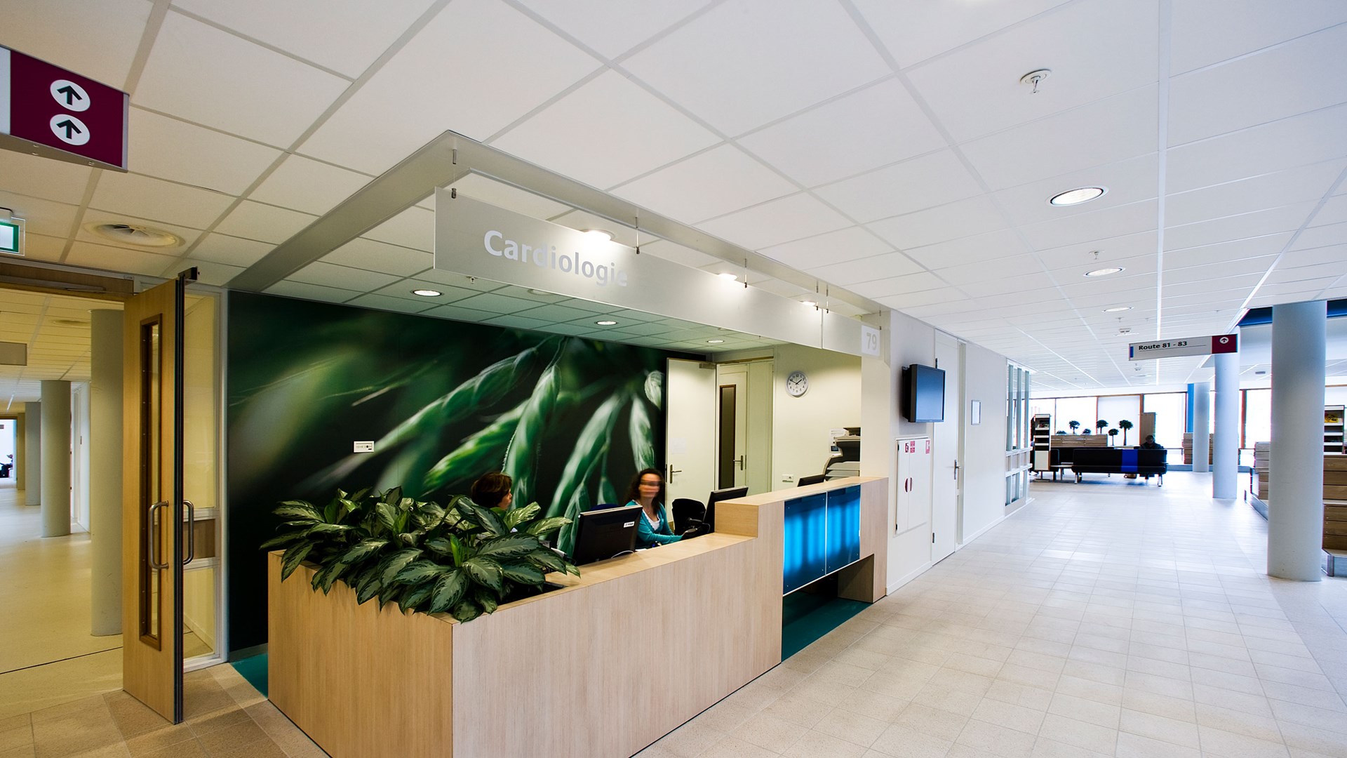 Лечебные учреждения часто отличаются запутанной планировкой, и важно обеспечить возможность легко и быстро находить путь в больнице. Цветовое оформление в лечебных учреждениях часто используется для того, чтобы посетители легче находили дорогу, но доказано, что это также положительно влияет на состояние здоровья пациента.