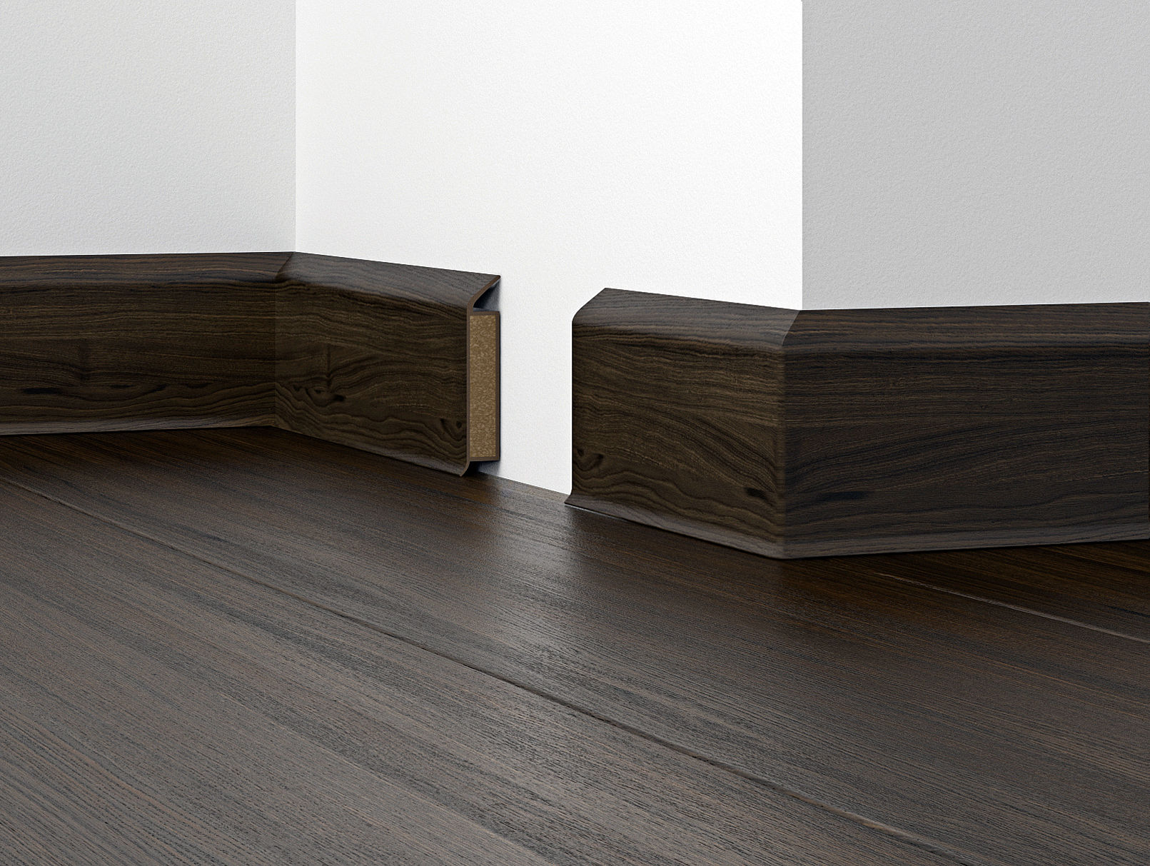 Эластичный уплотнитель с двух сторон обеспечивает идеальное примыкание к поверхностям пола и стен. Цвета и фактуры плинтуса идеально соответствуют напольным покрытиям известных дизайнерских коллекций.